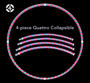 Our best value collapsible hoop, the Quattro Hoop is constructed with four sections of tubing that disconnect via button snaps into four convenient pieces that fit inside our hoop bag. While the regular assembled diameters are sized for full body hooping and a focus on your core, the Quattro hoops can be assembled using only 3 of the 4 sections to create a smaller hoop – great for arm hooping, isolations or small kids!
